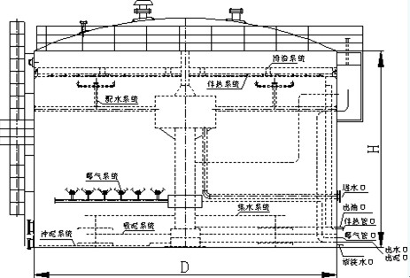 曝氣除硫裝置:含油污水中含有較多的固體顆粒、懸浮油珠、硫酸鹽還原菌、硫化氫和二氧化碳氣體等有害物質(zhì)。污水進(jìn)入曝氣系統,通過(guò)曝氣將厭氧條件下才能生存的硫酸鹽還原菌去除;氣泡粘附水中的懸浮油珠及部分固體顆粒,使其浮升至水面與水分離;同時(shí),空氣通入污水中可將有害氣體從水中吹脫出來(lái)。