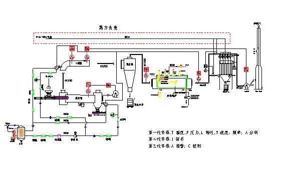 煤氣發(fā)生爐、旋轉爐本體、二次燃燒兼集塵器、G-G翅片熱交換、G-L列管式熱交換裝置、噴淋吸收塔、霧水分離器、引風(fēng)機、彎頭、方接圓、煤氣燒嘴及輸送管路系統、空氣壓縮機及輸送系統、溫控型燃燒器、風(fēng)機及供風(fēng)系統、燃燒室溫度自動(dòng)控制系統、電控系統、堿液泵、自動(dòng)投料裝置、自動(dòng)出灰裝置、煙囪及其它控制閥及管路,操作平臺及爬梯、連接件、支撐件及緊固件等。